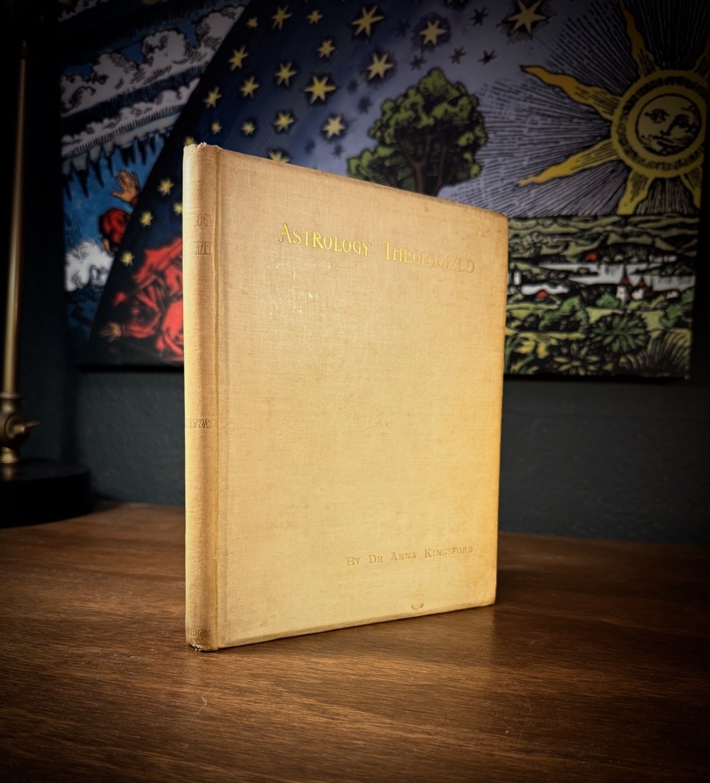 A very scarce copy of Kingsford’s Astrology Theologized containing a translation of an astrological/Rosicrucian treatise by Valentin Weigel (1533-1588) originally published in 1649. This 1886 redway edition has often been linked to the later mythology of “Anna Sprengel” the elusive adept said to have authorized W. Wynn Westcott’s founding of the Hermetic Order of the Golden Dawn. The shared motto Sapiens Dominabitur Astris (“The wise shall rule the stars”) which Westcott attributed to Anna Sprengel whose supposed philosophy closely mirrored that of Anna Kingsford. Kingsfords death in 1888 is believed to have prompted Westcott’s swift formation of his magical Order. "Westcott could not have been unaware of the connection between the motto and his 'Anna', for he was given a copy of this edition by Redway immediately upon its publication."