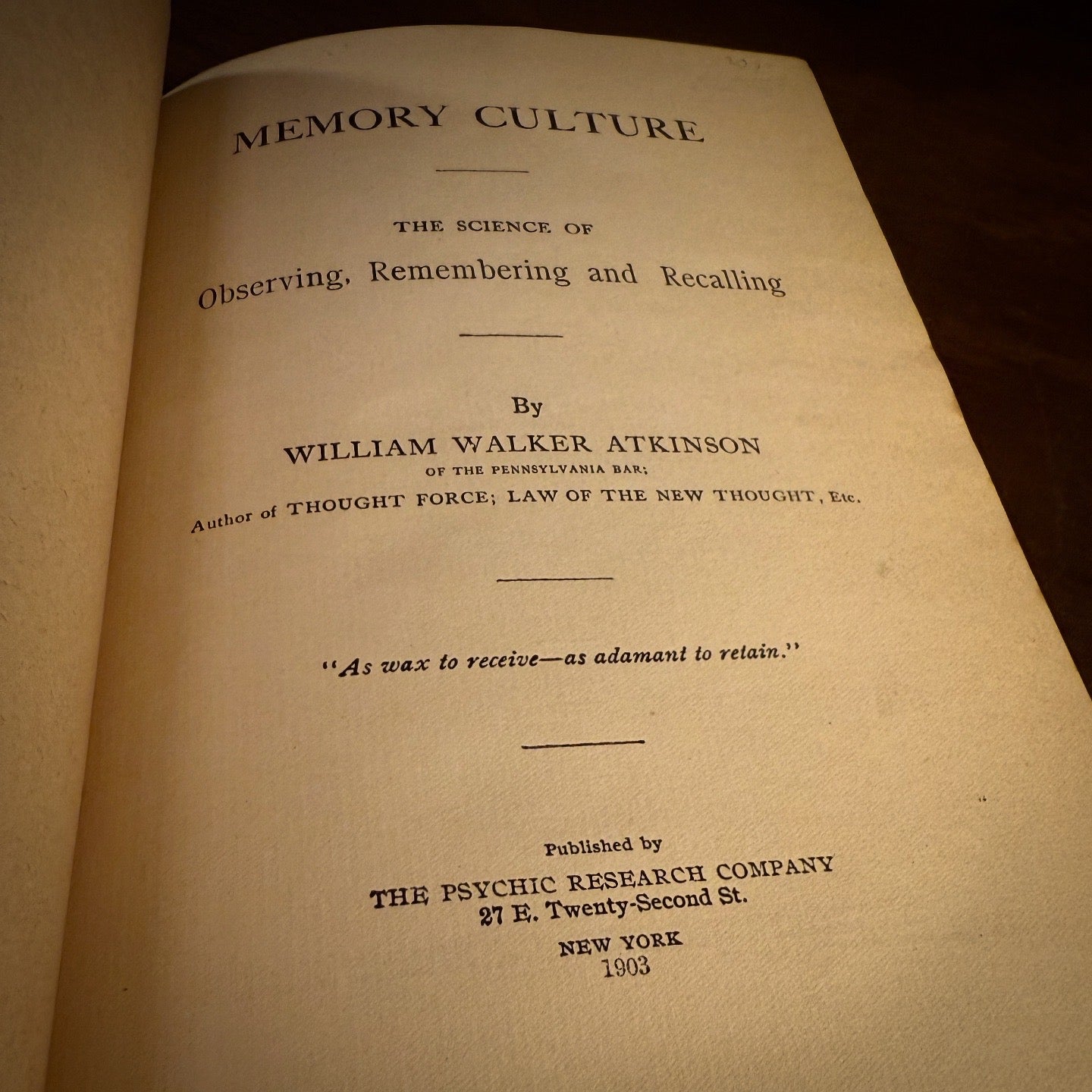Memory Culture the Science of Observing, Memory and Recalling by William Walker Atkinson