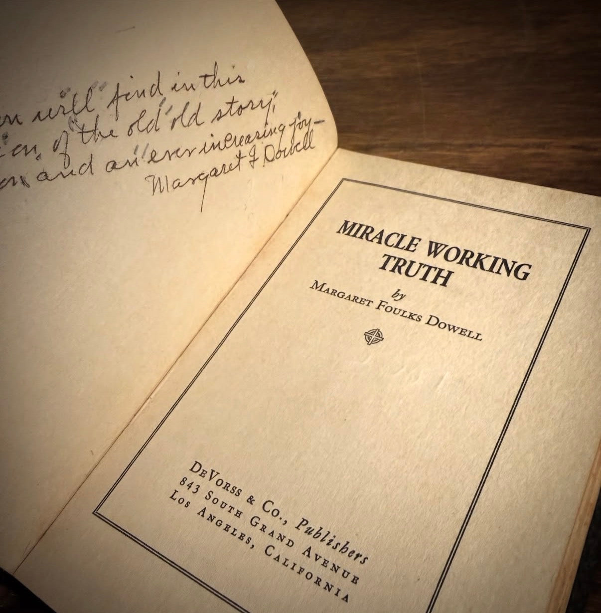 Inscribed and Signed by author "Trusting you will find in this ‘Miracle Working Truth’ some of the light to lead you onward and ever upward.