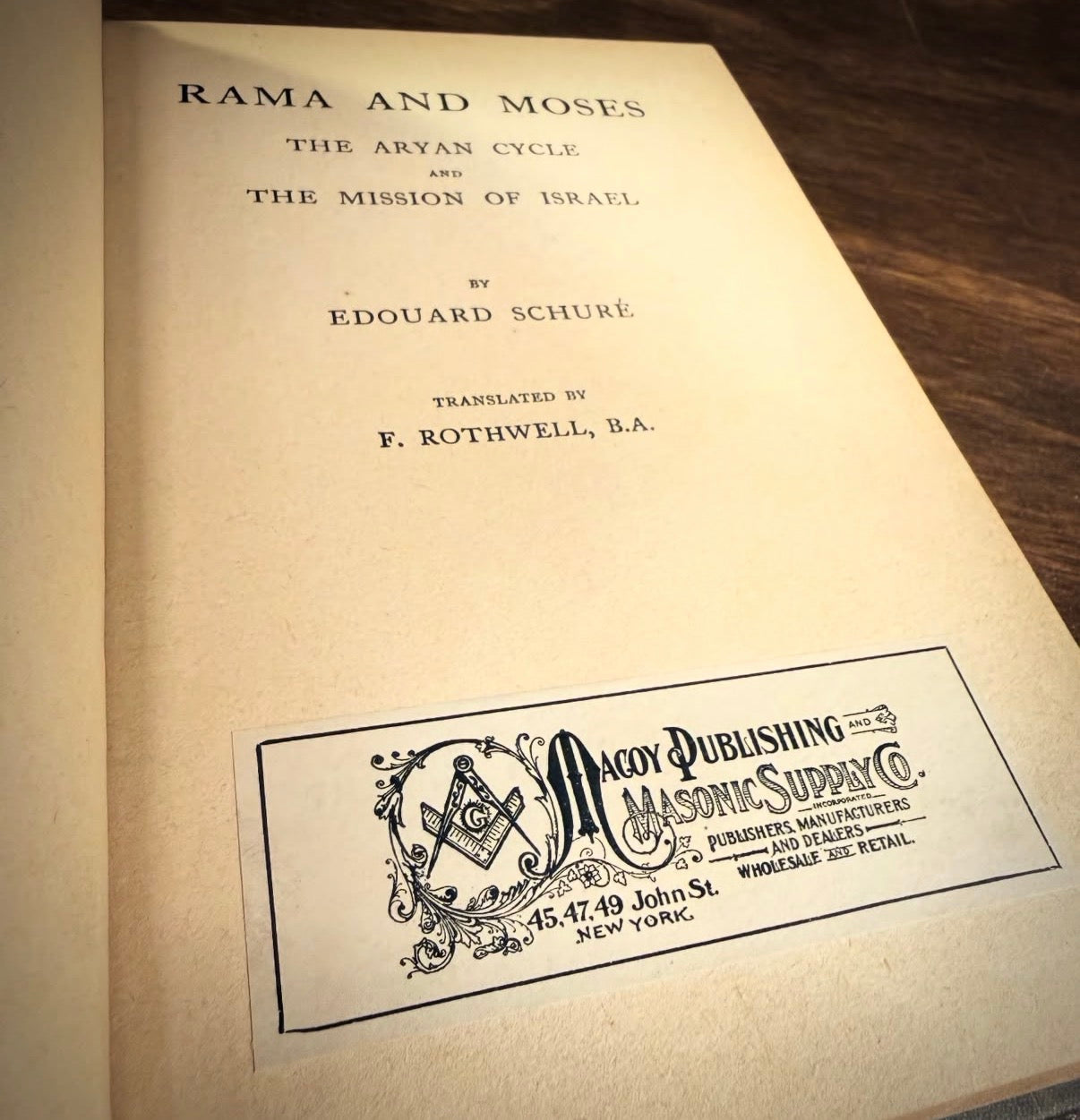 The first English translation of Rama and Moses by Édouard Schuré, originally published in 1889 as part of The Great Initiates, the work for which he is best known. These early English translations were issued in slim individual volumes and were later compiled to form the complete English edition of The Great Initiates.