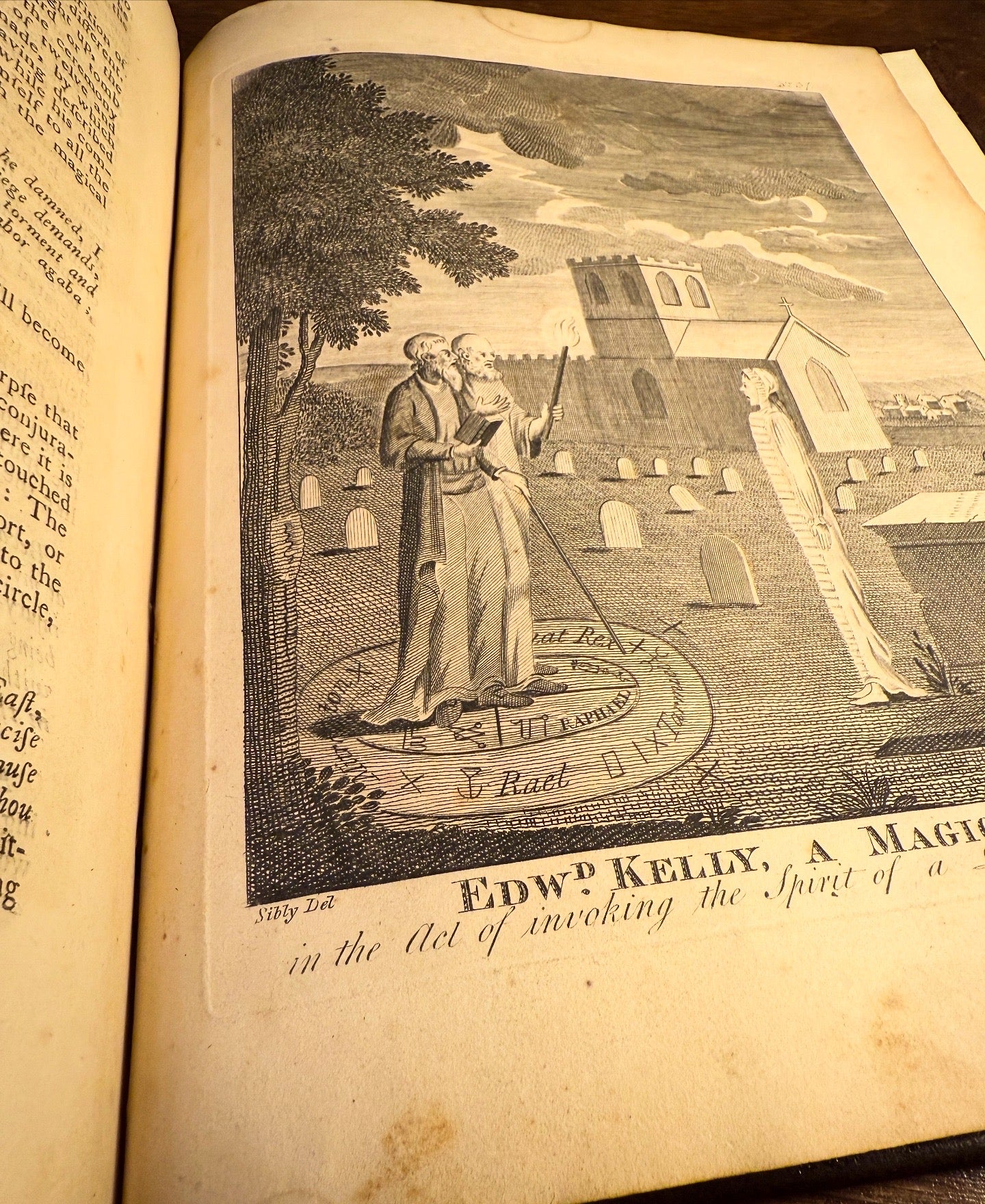 Beautiful Oxford-style re-binding, five raised bands, morocco label with title to spine, early inscription to verso of frontispiece, complete with 30 copper plates, scattered foxing throughout mostly light to moderate though text block is very well preserved overall, portrait in the third part (pp. 609–610) with significant stain though image unaffected, as is common with these editions pagination not strictly continuous: Volume I ends at p. 608; after preliminaries (frontispiece, title, blanks, and a chart of George Mitchell), Volume II resumes at p. 620, as issued, moderate foxing to several illustrations, illustration of “A View of Man” No. 51 with small rectangular cutout to outer edge not affecting the engraving, stain to outer edge of pp. 950–951 and 964–969 not affecting text, engraving on p. 890 with a small dark stain at center of engraving of Edward Kelly with coin sized stain to upper edge, engraving No. 33 with stain to outer edge not affecting image, overall wonderfully preserved in very good condition.